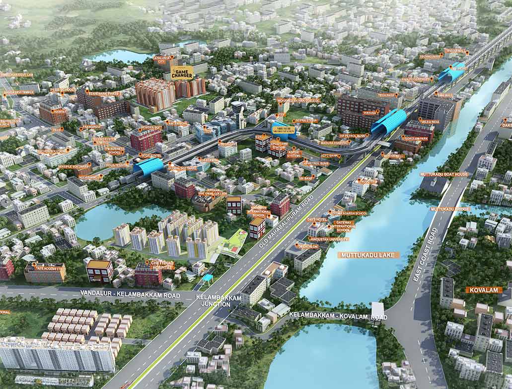- Located at Siruseri, OMR – Chennai’s fastest-growing IT and residential hub